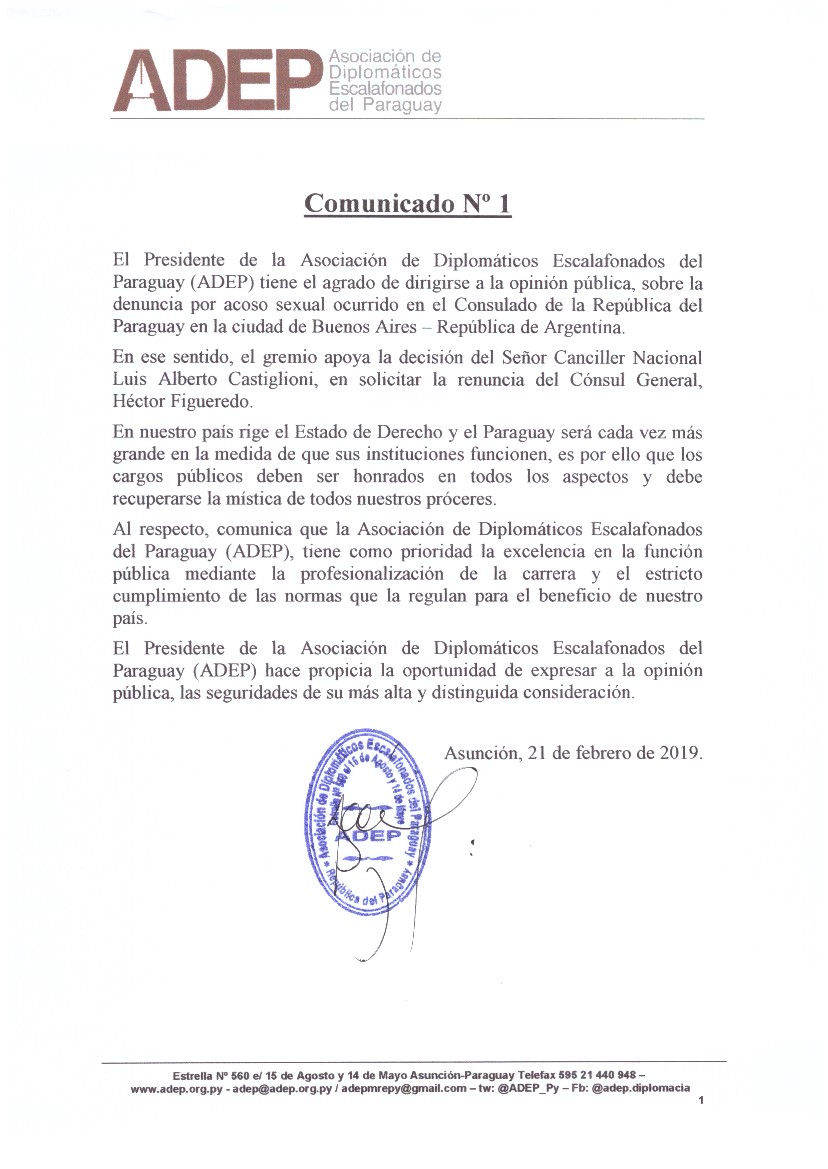 Diplomáticos Escalafonados del Paraguay (ADEP) tiene el agrado de dirigirse a